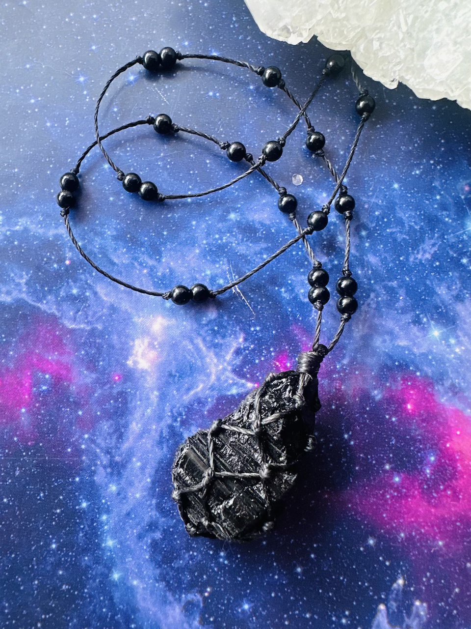 Czarny turmalin  uważany jest za potężny kamień ochrony. Wierzy się, że tworzy tarczę energetyczną wokół osoby noszącej go lub znajdującej się w jego bliskości, która absorbuje i rozprasza negatywną energię oraz oddziałuje jako bariera chroniąca przed wpływami zewnętrznymi.