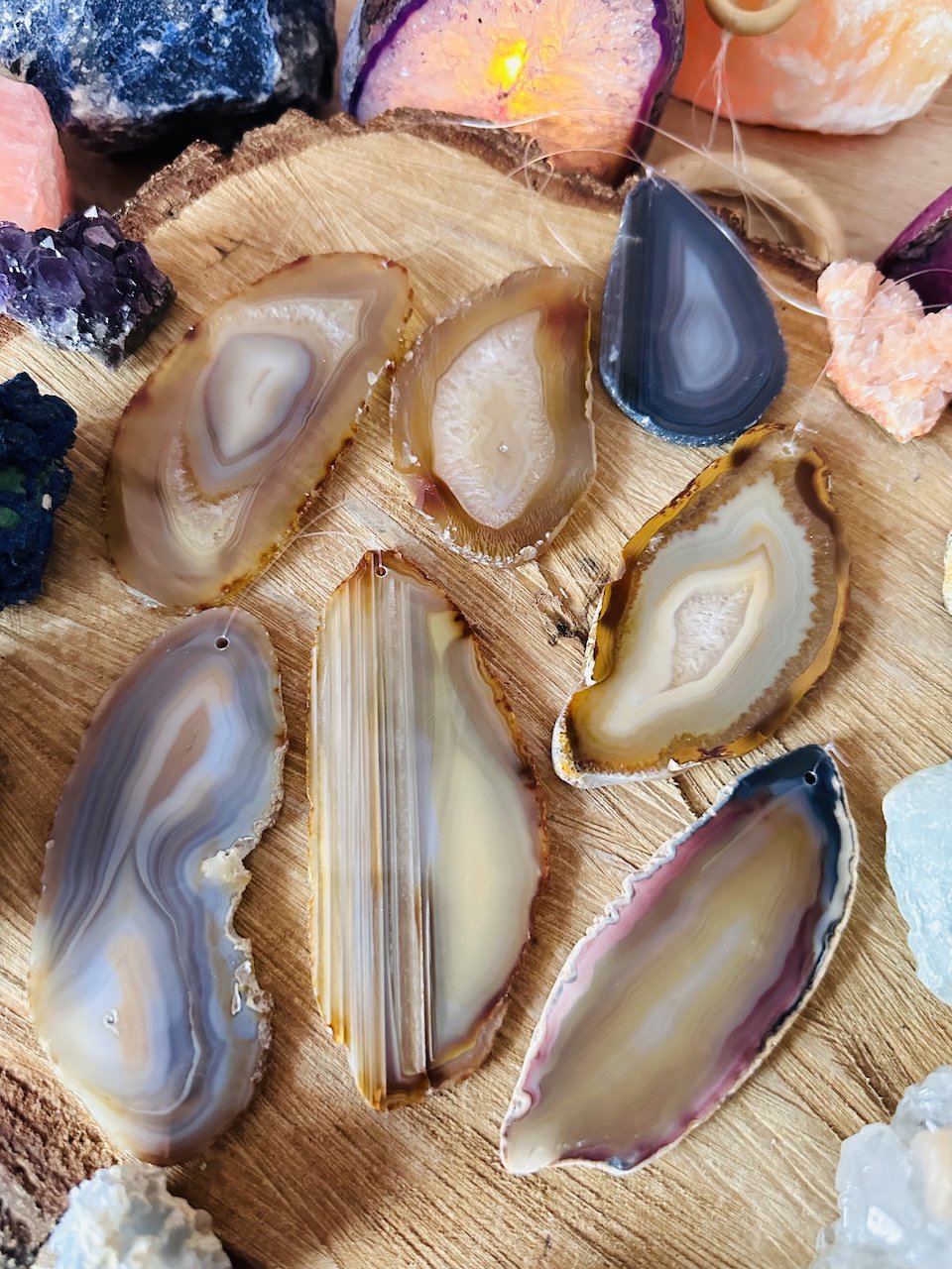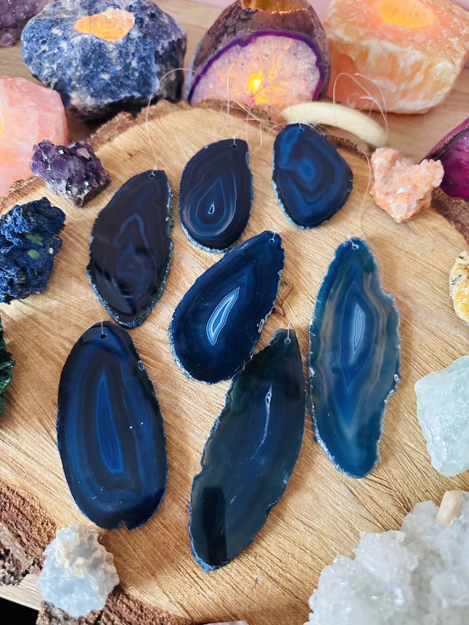 Dzwonki wietrzne wykonane z plastrów Agatów, to niezwykle przyjemne doświadczenie dla zmysłów. Kiedy wiatr powiewa, plastry agatu delikatnie uderzają o siebie, wydając kojący i relaksujący dźwięk. Ten subtelny melodyjny odgłos dodaje uroku i harmonii do otoczenia, tworząc przyjemną atmosferę. Agat jest uważany za kamień równowagi i stabilności. Jego obecność może pomóc w redukcji stresu, zwiększeniu poczucia bezpieczeństwa oraz wprowadzeniu spokoju i harmonii do naszego umysłu. Dzięki temu dzwonki z plastrów agatu mogą być używane jako elementy terapeutyczne, wspierające nasze dobre samopoczucie i relaksację.