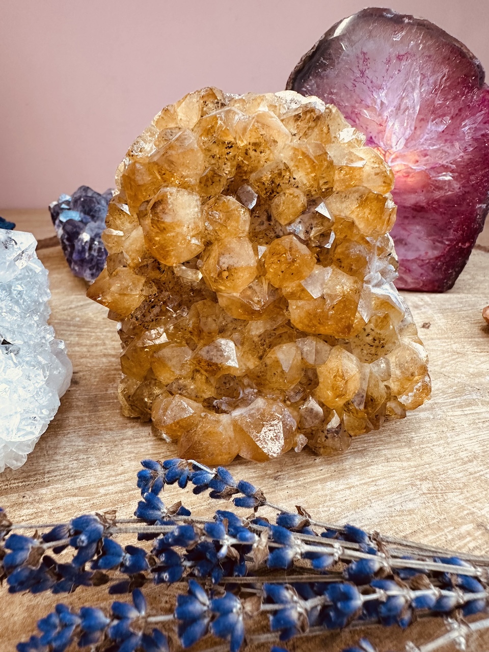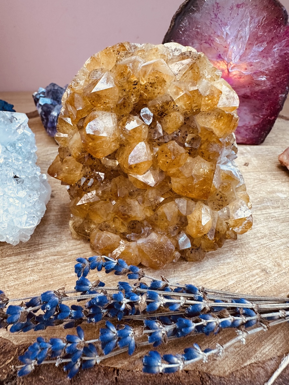 Cytryn: pomaga w wyrażaniu siebie w sposób otwarty i autentyczny. Ułatwia komunikację oraz wyrażanie uczuć i myśli. Pomaga w budowaniu pewności siebie oraz wzmocnieniu poczucia własnej wartości. Może pomóc w usuwaniu blokad energetycznych i przywracaniu harmonii. Jest to kamień manifestacji i obfitości. Działa jak magnes, przyciągając ludzi i sytuacje, które prowadzą nas do sukcesu finansowego i spełnienia.
