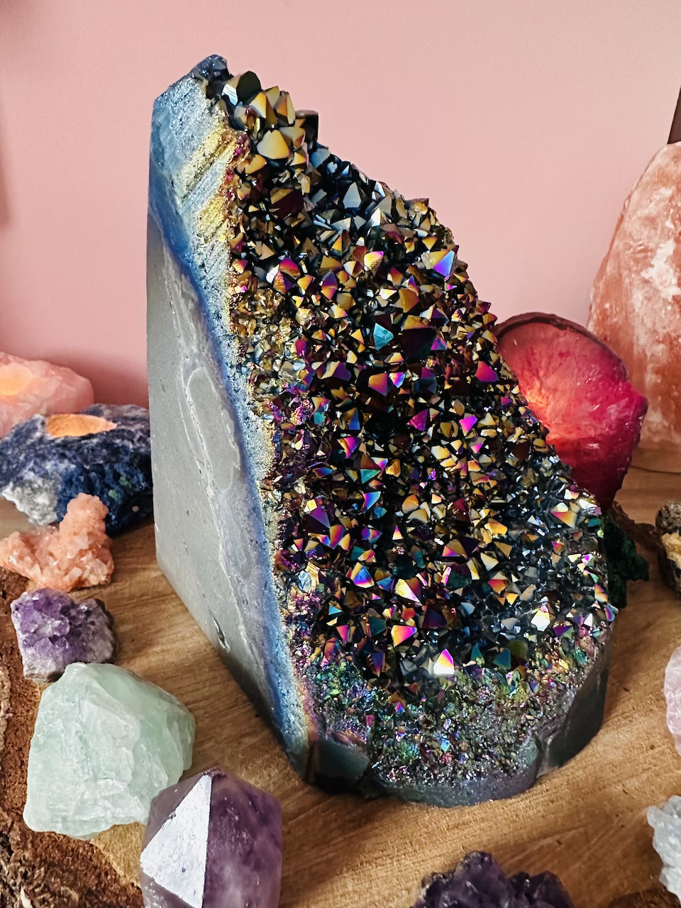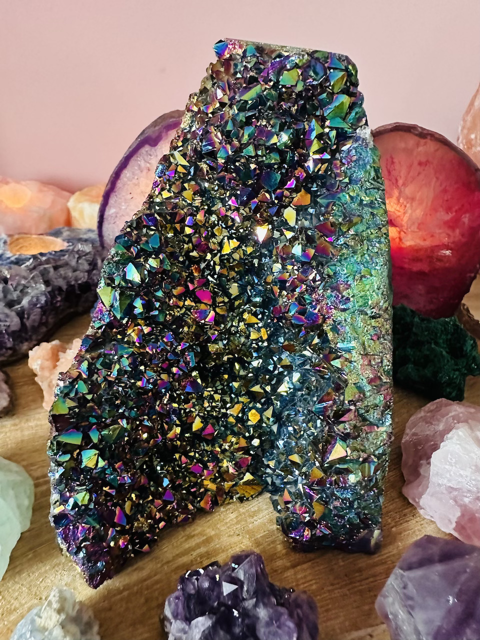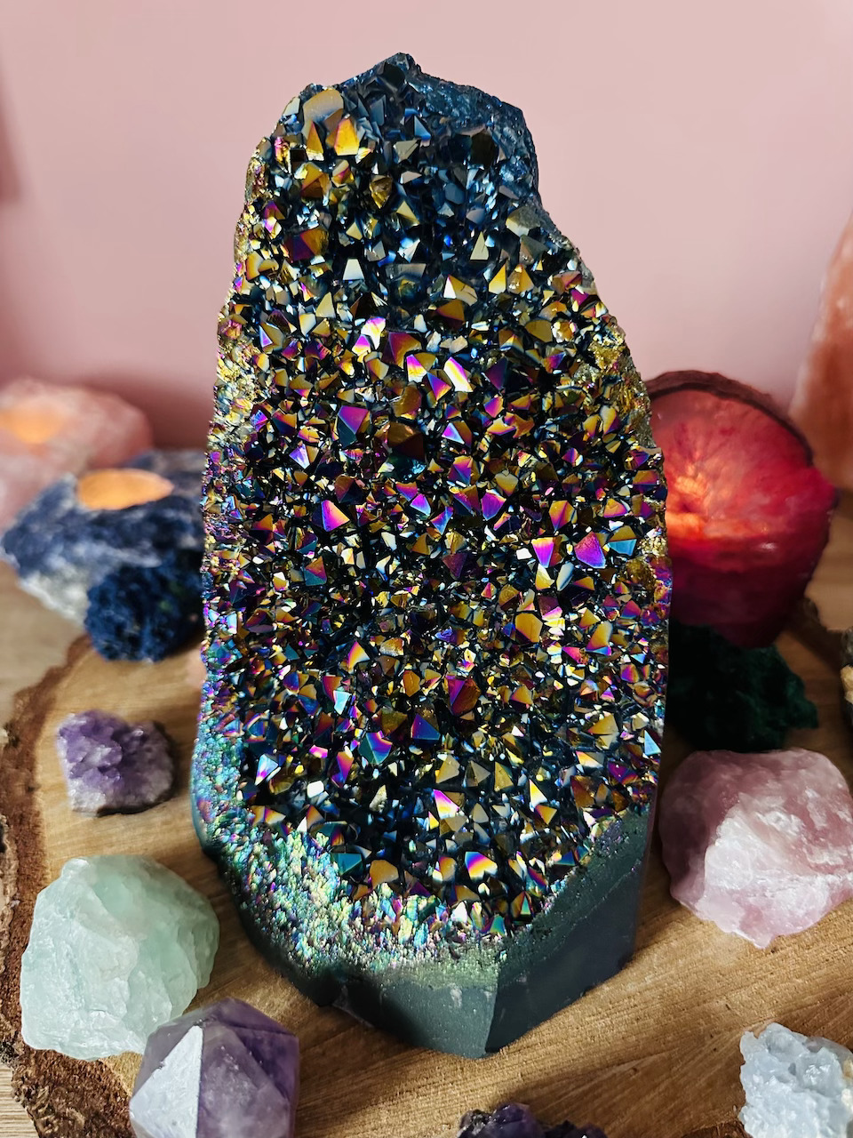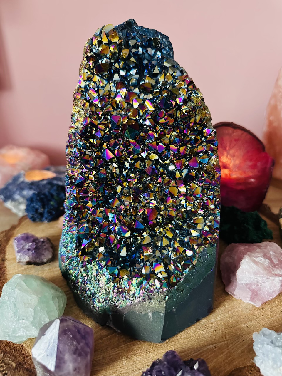 Kwarc Aura uważany jest również za kamień ochronny, który może pomóc w tworzeniu pola energetycznego, które chroni przed negatywnymi wpływami czy energią. Wspomaga komunikację między różnymi wymiarami lub płaszczyznami istnienia, pomagając w otwarciu się na duchowe przekazy.