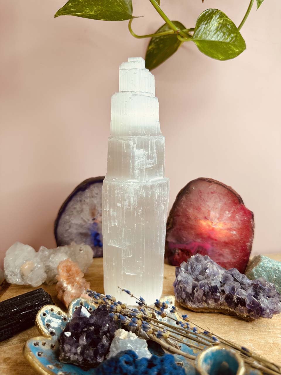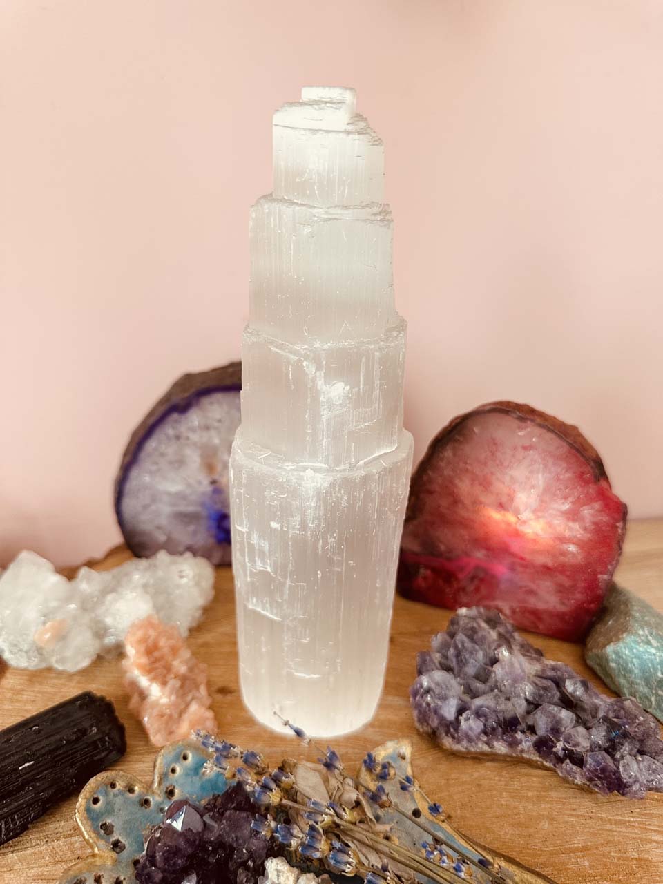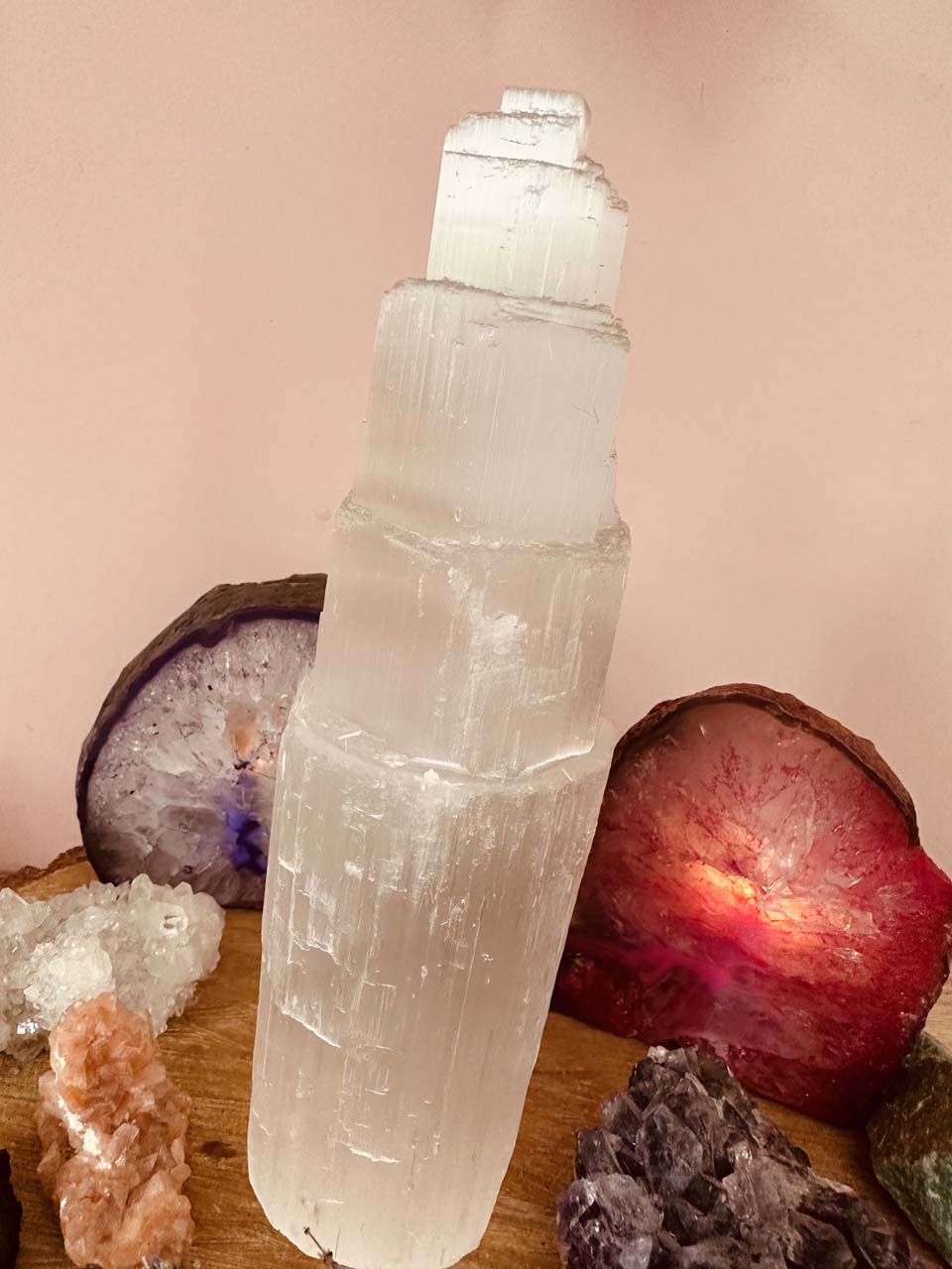 Warto pamiętać, że Selenit jest odmianą gipsu o bardzo niskim stopniu twardości, dlatego też bardzo łatwo go zarysować i zniszczyć. Nie lubi wody. Selenit potęgują naszą inteligencję emocjonalną. Pozwala ustabilizować szalejące w nas uczucia i myśli. Selenit potęguje poczucie bezpieczeństwa i wspomaga koncentrację. Często nazywany “anielskim skrzydłem”.