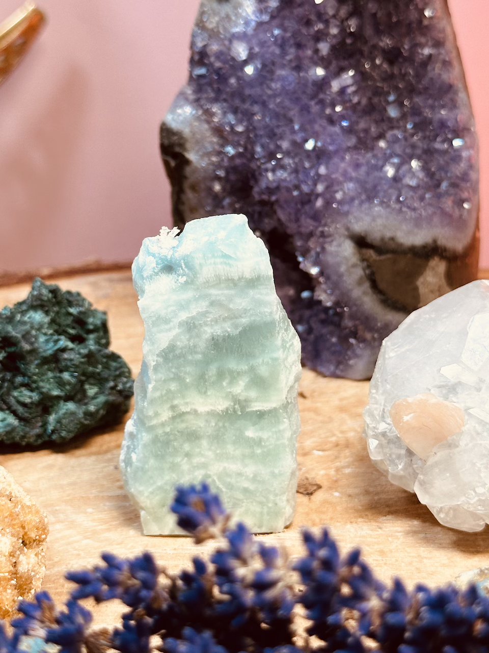 W połączeniu z innymi minerałami (np. kwarcem różowym lub ametystem) potęguje działanie oczyszczające i uspokajające.