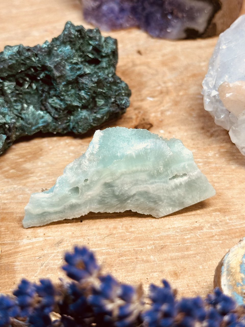 To kamień czakry gardła – ułatwia wyrażanie uczuć, wspiera szczerą i spokojną komunikację. Idealny dla osób, które mają trudność z mówieniem o swoich emocjach lub boją się konfrontacji.