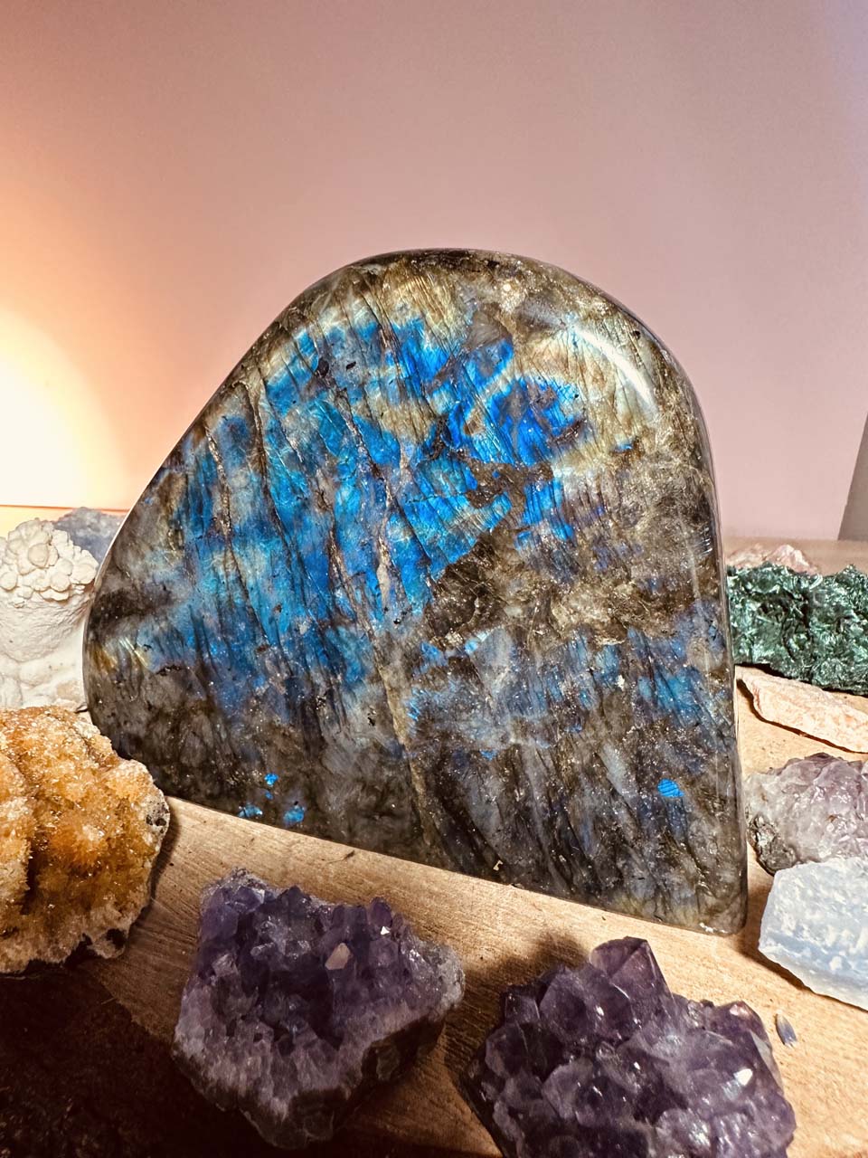Labradoryt jest kamieniem, który wspiera duchowy rozwój i zwiększa duchową świadomość. Pomaga w rozwijaniu duchowych zdolności i w poszukiwaniu głębszego zrozumienia życia. J Labradoryt pomaga w zachowaniu równowagi emocjonalnej i w radzeniu sobie ze stresem i niepokojem. Pomaga w rozładowywaniu negatywnych emocji.est kojarzony z twórczością i kreatywnością. Pomaga w rozwoju pomysłów i inspiracji oraz wspiera proces tworzenia.