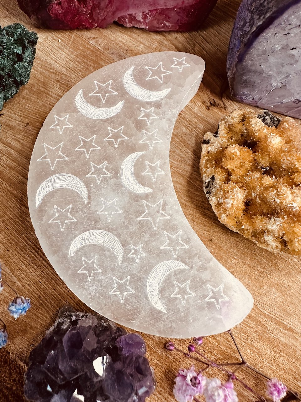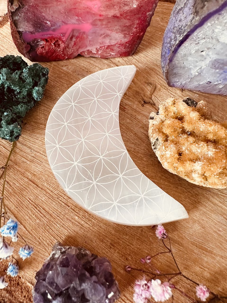 Warto pamiętać, że Selenit jest odmianą gipsu o bardzo niskim stopniu twardości, dlatego też bardzo łatwo go zarysować i zniszczyć. Nie lubi wody. Selenit potęgują naszą inteligencję emocjonalną. Pozwala ustabilizować szalejące w nas uczucia i myśli. Selenit potęguje poczucie bezpieczeństwa i wspomaga koncentrację. Często nazywany “anielskim skrzydłem”.