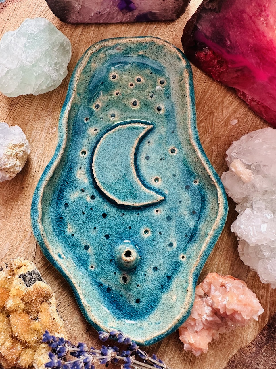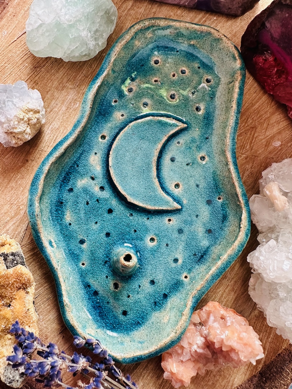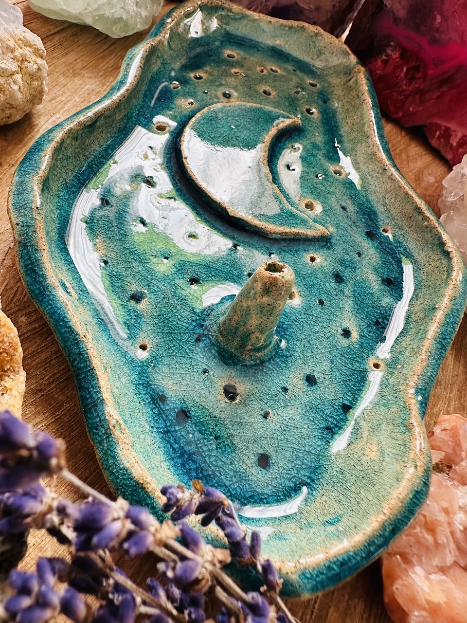 Ceramiczna podstawka pod kadzidła, ręcznie wykonana. Dzięki niej możemy bezpiecznie palić kadzidła, jednocześnie ciesząc się pięknym i inspirującym wzornictwem. To nie tylko praktyczny przedmiot, ale również interesujący element dekoracyjny, który idealnie wpisuje się w różne style wnętrz.