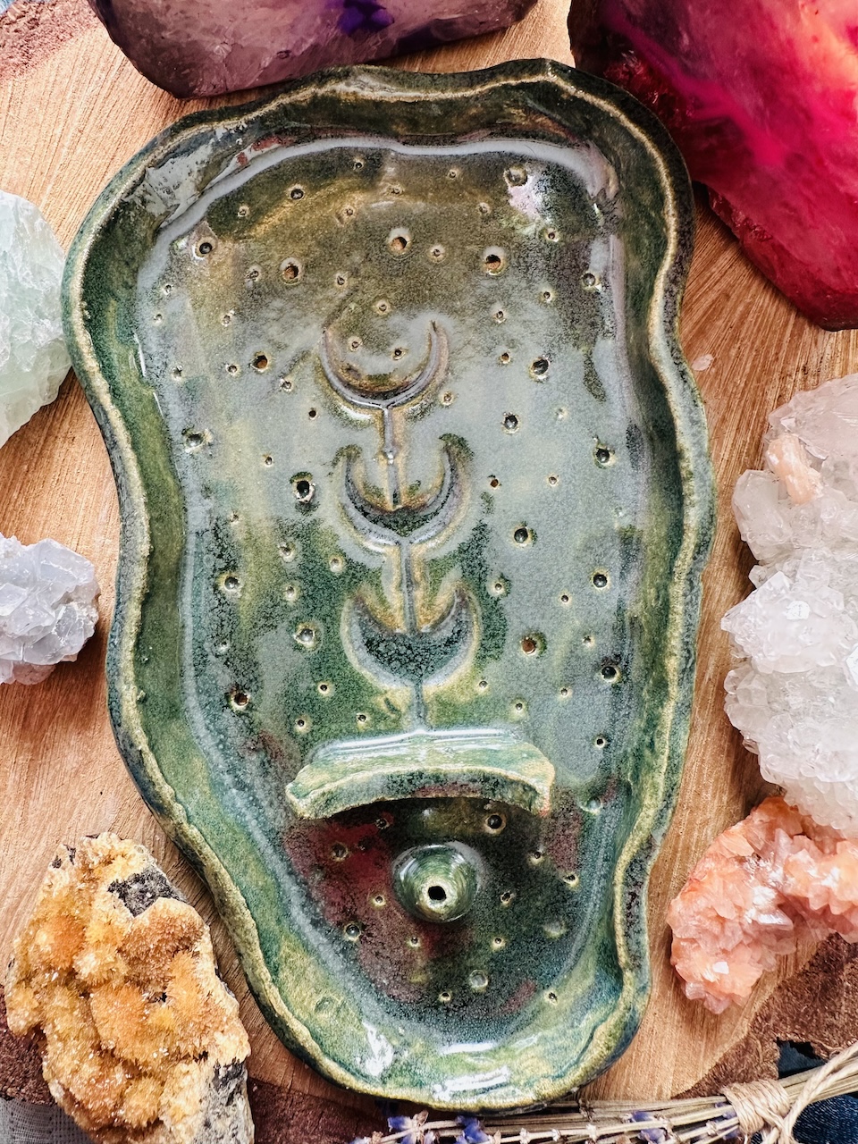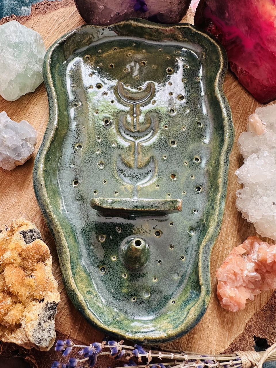 Ceramiczna podstawka pod kadzidła, ręcznie wykonana. Dzięki niej możemy bezpiecznie palić kadzidła, jednocześnie ciesząc się pięknym i inspirującym wzornictwem. To nie tylko praktyczny przedmiot, ale również interesujący element dekoracyjny, który idealnie wpisuje się w różne style wnętrz.