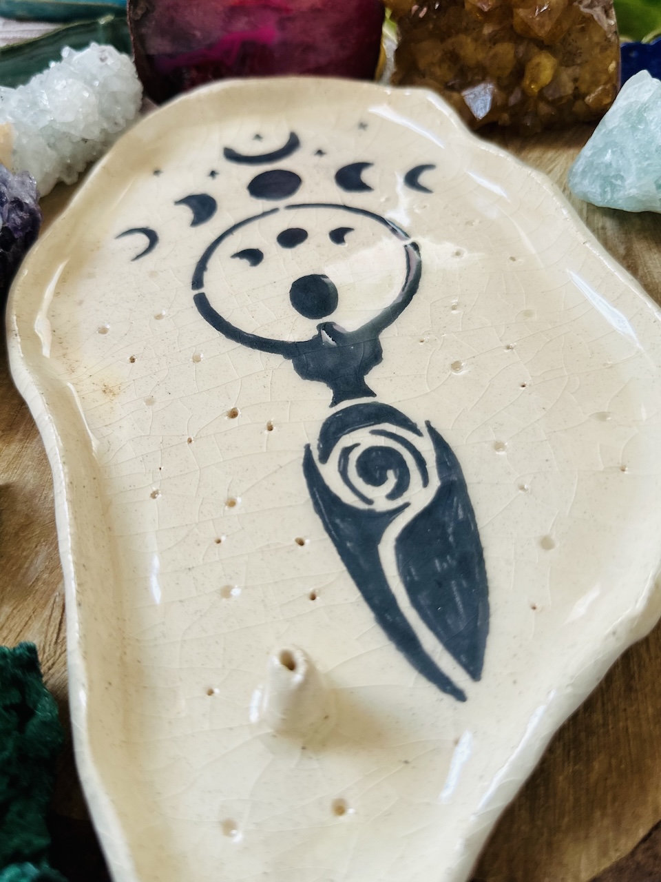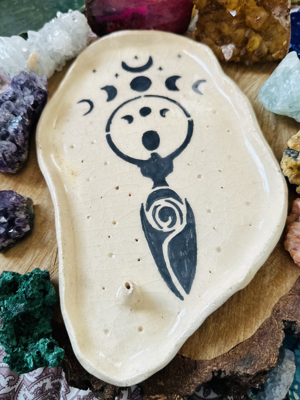 Ceramiczna podstawka pod kadzidła, ręcznie wykonana. Dzięki niej możemy bezpiecznie palić kadzidła, jednocześnie ciesząc się pięknym i inspirującym wzornictwem. To nie tylko praktyczny przedmiot, ale również interesujący element dekoracyjny, który idealnie wpisuje się w różne style wnętrz.