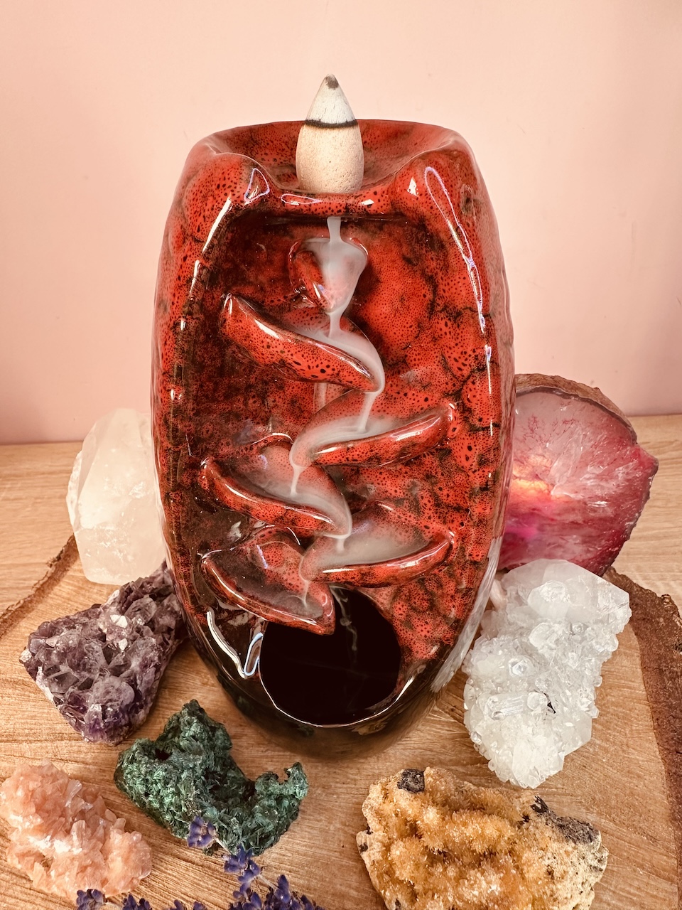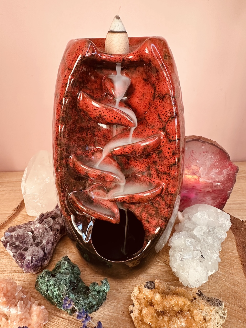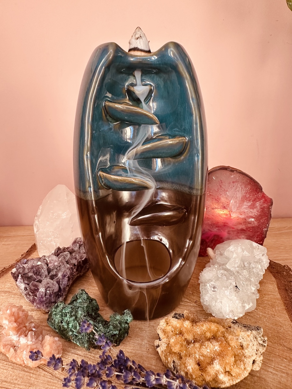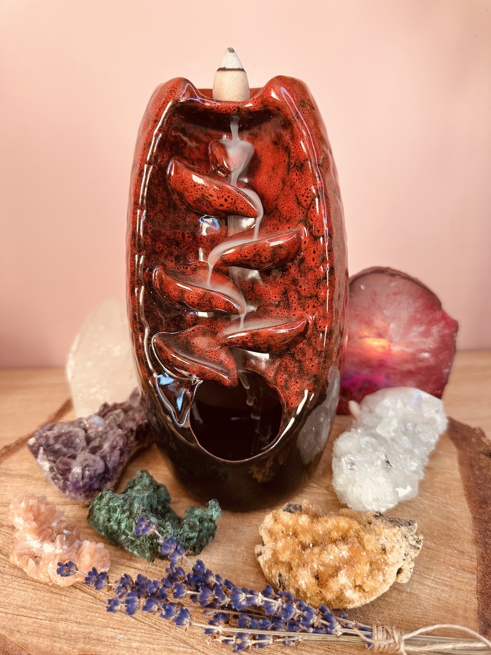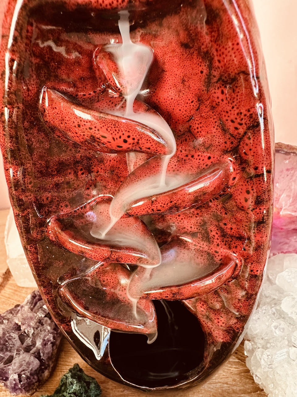 Niewiarygodny efekt spływającego dymu zaskoczy każdego – wystarczy zapalić czubek kadzidła i umieścić je na szczycie ceramicznego kominka. Aromatyczny dym będzie spływał po jego żłobieniach, jak również lekko unosił się do góry bezpośrednio z czubka kadzidła. Dzięki temu rozniesie się po całym pomieszczeniu i domu.
