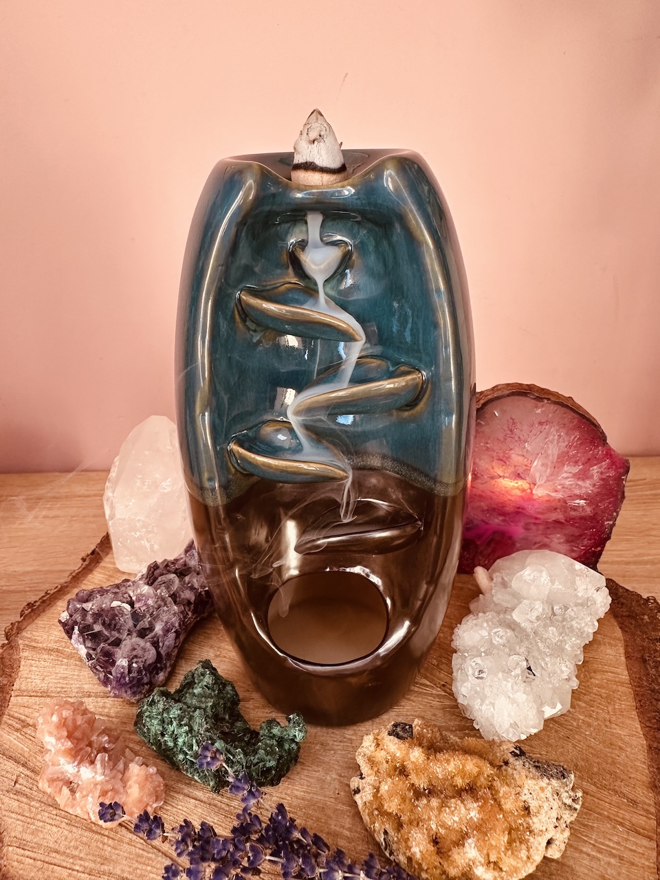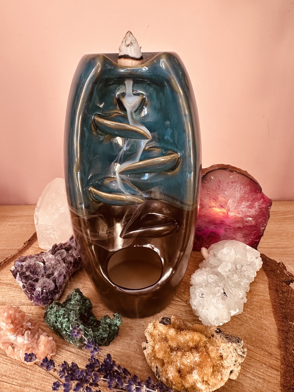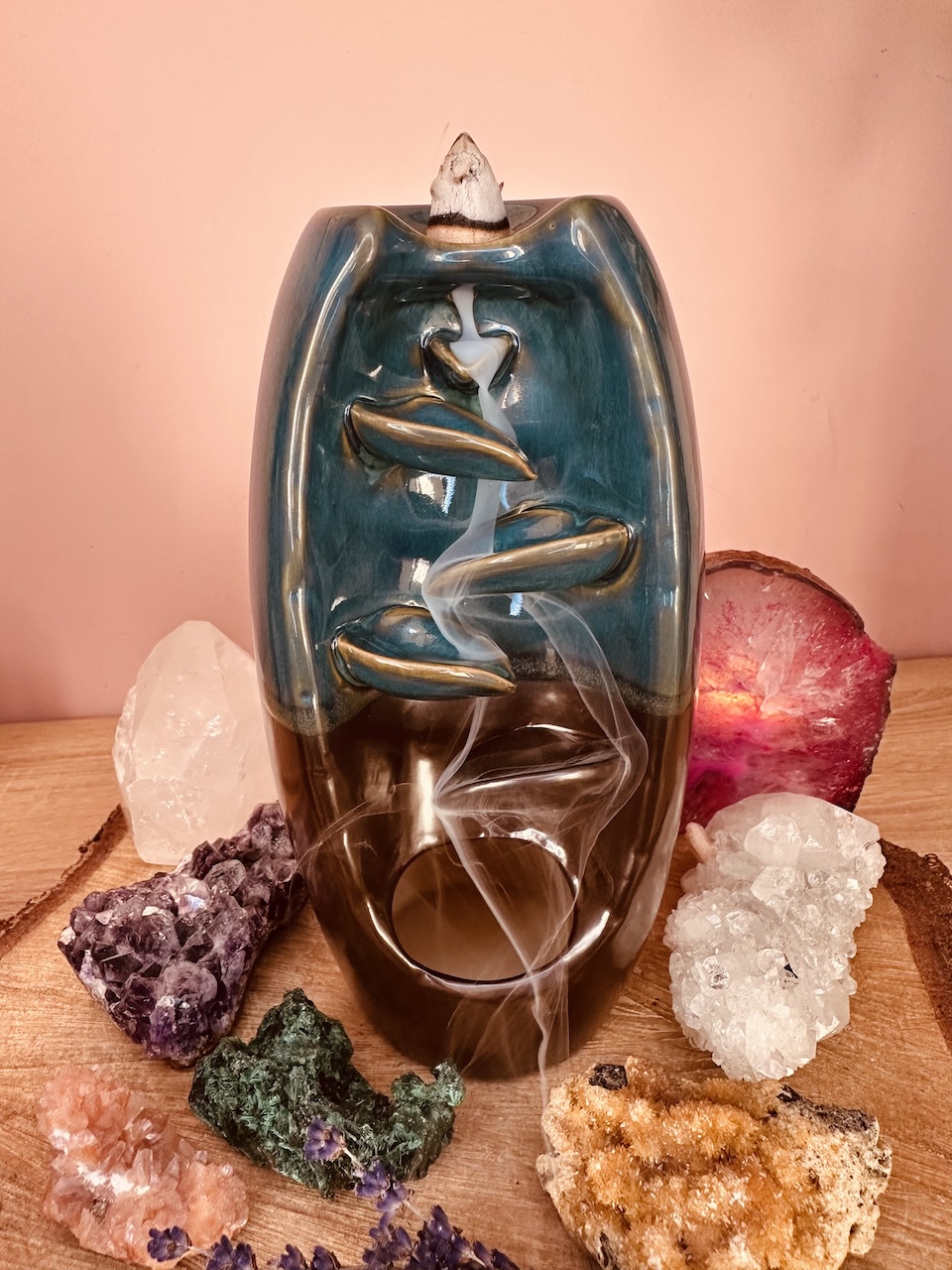 Niewiarygodny efekt spływającego dymu zaskoczy każdego – wystarczy zapalić czubek kadzidła i umieścić je na szczycie ceramicznego kominka. Aromatyczny dym będzie spływał po jego żłobieniach, jak również lekko unosił się do góry bezpośrednio z czubka kadzidła. Dzięki temu rozniesie się po całym pomieszczeniu i domu.